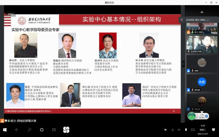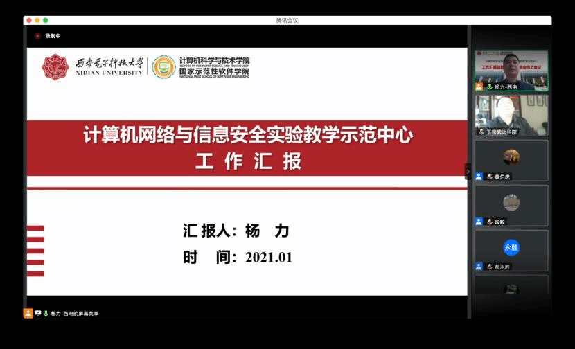 (通讯员 段毅 黄伯虎)1月27日上午,计算机网络与信息安全国家级实验教学示范中心通过腾讯会议举行了“工作汇报及教学指导委员会线上会议”。参加此次会议的教学指导委员会专家有:北京大学郝永胜教授、陕西师范大学傅钢善教授、西北大学耿国华教授、西安交通大学桂小林教授、中国高校创新创业孵化器联盟理事长蔡震、beat365亚洲体育在线官网崔江涛教授和苗启广教授。学校及学院参会代表有:学校实验室与设备处副处长(主持工作)韩卿、学院教学副院长万波,实验示范中心主任杨力、副主任贾文、王宗武、黄伯虎、张跃宇及实验示范中心教师等30余人。本次会议由杨力主任和郝永胜教授共同主持。