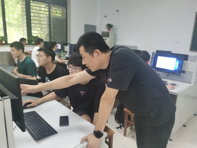 课程前半段,宋志朋老师主要进行理论讲授。从程序设计语言的发展历程引出为什么要使用面向对象,面向对象的特性以及基本语法等,讲述过程中积极与学生互动。后半段,宋志朋老师引导学生开始编程实操,鼓励学生们不懂就问。学生们也非常珍惜这样的学习机会,不仅积极提问,还主动上台演示自己的程序,即使在休息时间也舍不得离开机房,仍然继续练习实战。